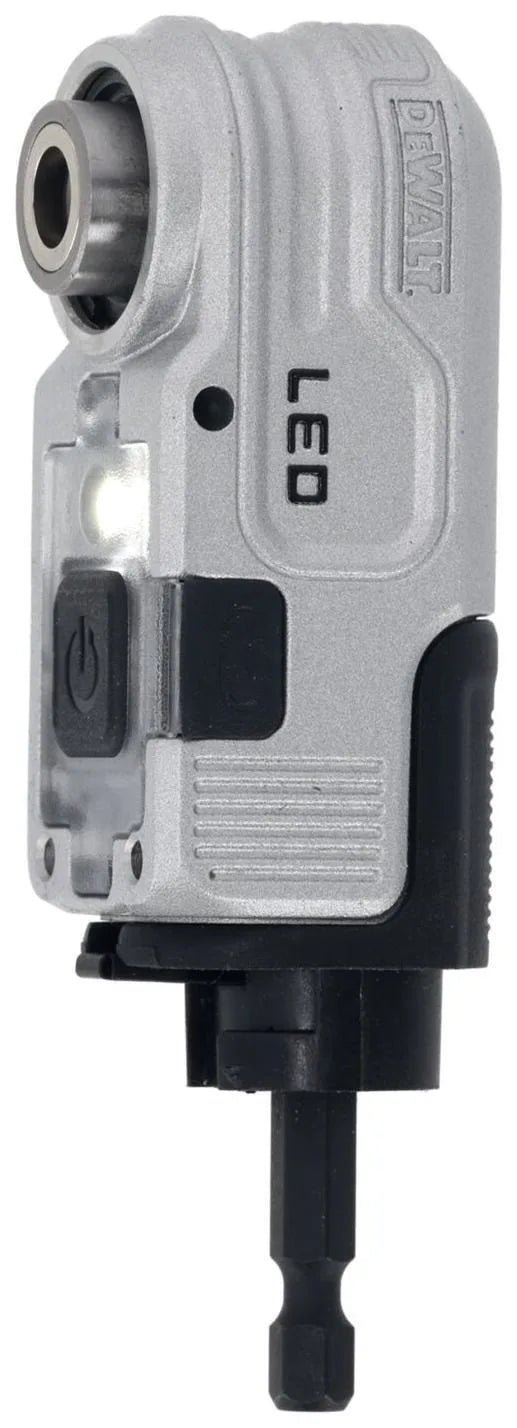 DeWalt LED högervinklat tillbehör är utformat för att underlätta arbete i trånga utrymmen. Den inbyggda kraftfulla LED-lampan lyser upp arbetsområdet, vilket ger bättre sikt och precision även på svårtillgängliga platser.