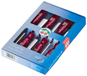 Detta 6-delade stämjärnset från Kirschen innehåller bredderna 6mm, 10 mm, 12mm, 16 mm, 20 mm och 26 mm – perfekt för exakta snitt i trånga utrymmen. Bladen är tillverkade av högkvalitativt verktygsstål och härdade till cirka 61 HRc för lång hållbarhet och skärpa.