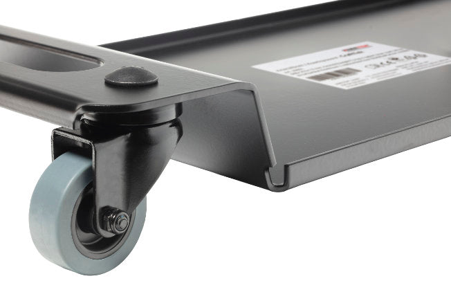 Brädan har ett stabilt stålchassi med svart pulverlack och högkvalitativa TPE-hjul som rullar tyst och kan svängas 360° för optimal rörlighet. Sidopanelerna är försedda med grepphål för snabb och enkel hantering.
