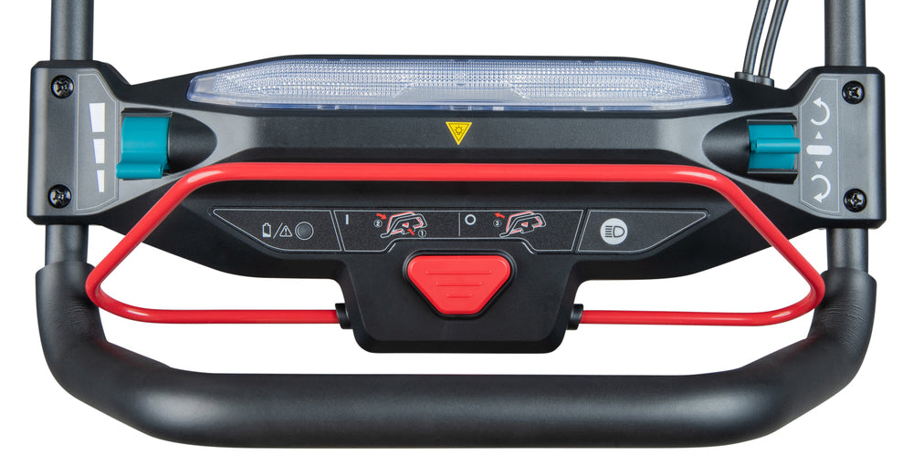 SN001G är byggd för nordiskt vinterbruk. LED-belysning fram och vid handtaget gör arbetet tryggt i mörker, medan XPT-skydd (IPX4) håller maskinen motståndskraftig mot snö, fukt och kyla. Den elektriska bromsen ger hög säkerhet och snabb stoppfunktion.