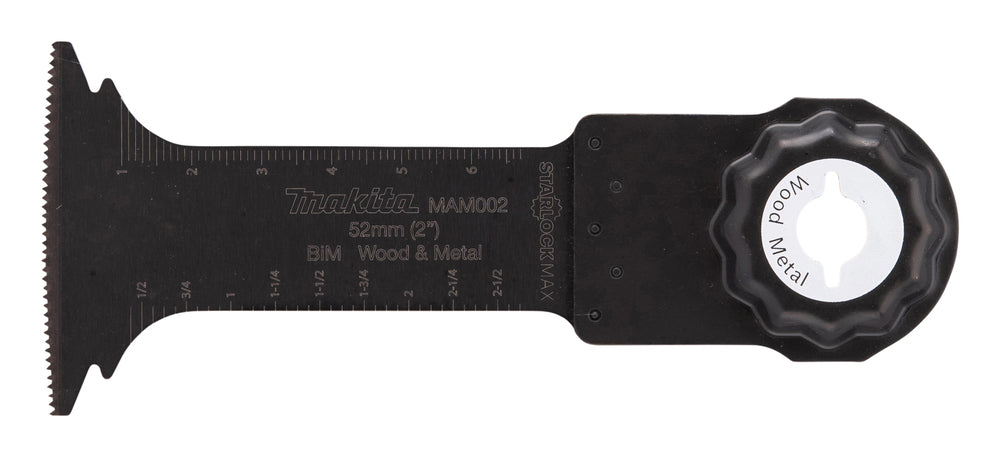 STARLOCK MAX multiblad speciellt utformat för sågning av material som trä, trä med spik, plywood och epoxi. Detta bimetallblad har en bredd på 52 mm och en arbetslängd på 70 mm. Bladet har 18 TPI.