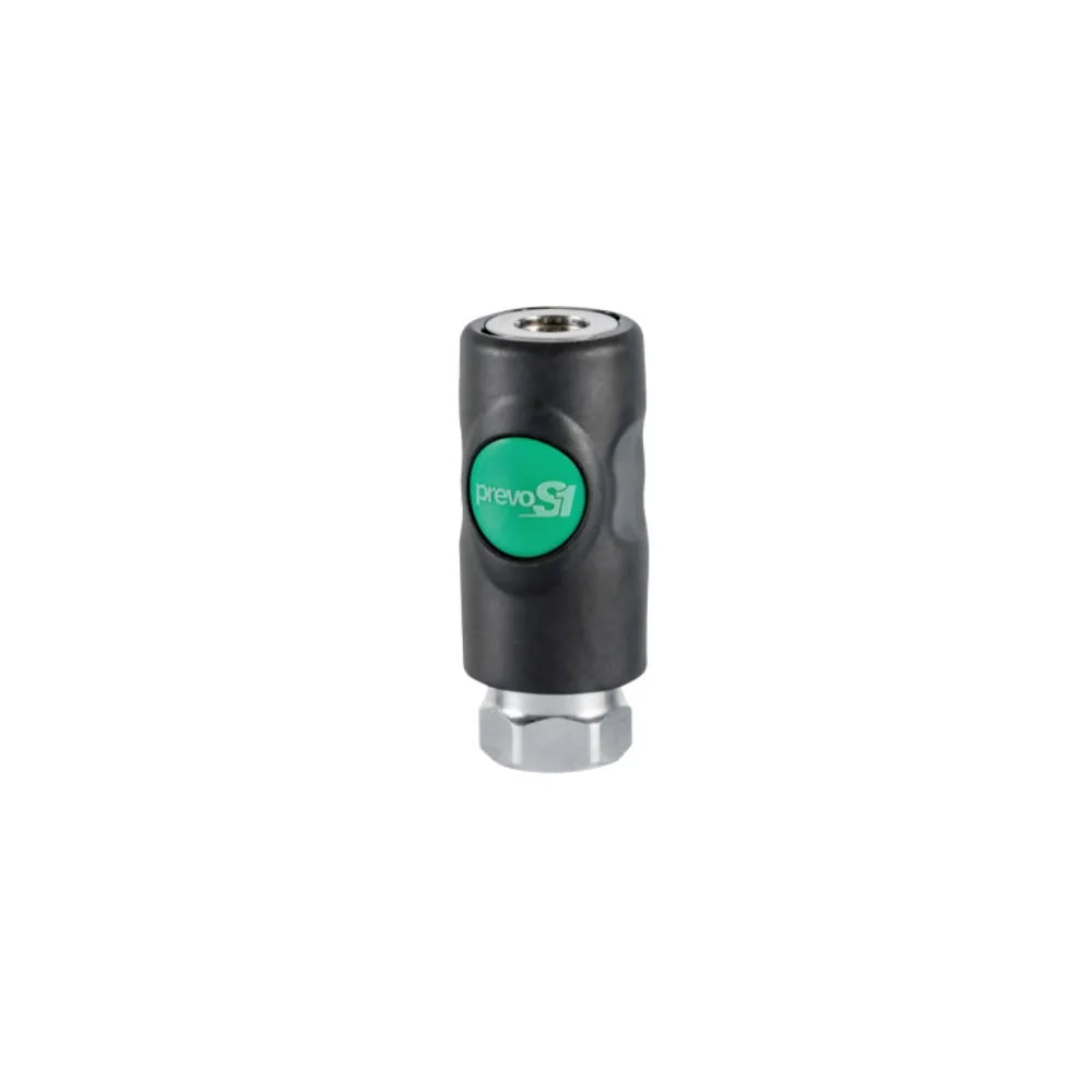 Prevost ESI S1 är en mycket robust och pålitlig snabbkoppling för tryckluft, byggd för verkstad, industri och professionellt bruk. Den kombinerar hög flödeskapacitet med ett Smart säkerhets-system som gör att lufttrycket släpps innan kopplingen tas bort – minskar risken för “hose whip” och gör arbetet säkrare.