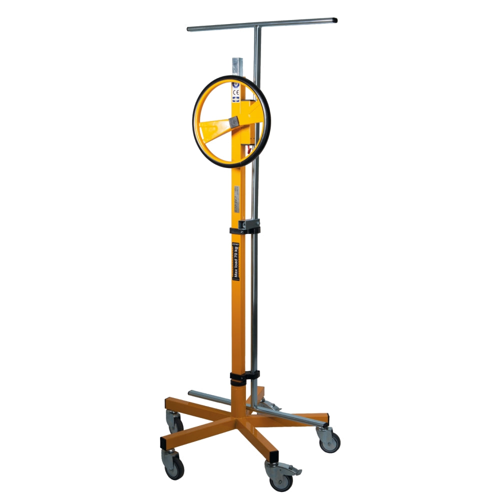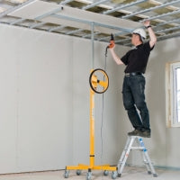 Skivhiss som hjälper dig att på ett smidigt sätt montera skivmaterial i innertak. Enkel att flytta runt på arbetsplatsen då den endast väger 23 kg. Bussningen i foten gör att du enkelt kan rotera skivan utan att flytta på hela foten. Maxlast på 70 kg och utrustad med 5 st länkhjul varav 2 st är bromsbara.