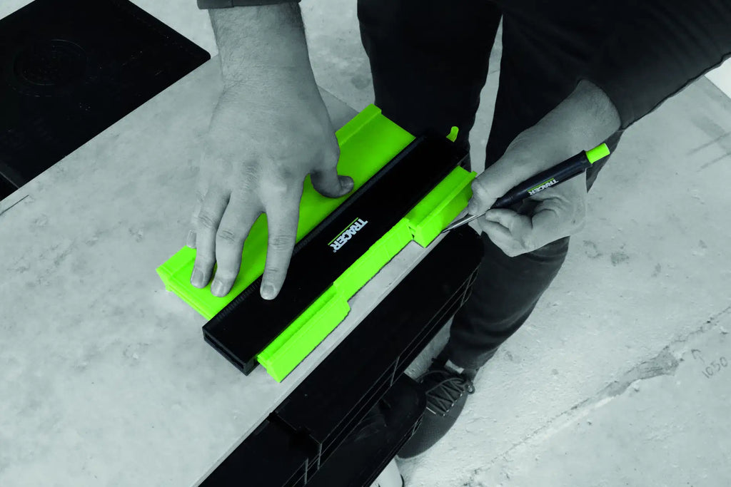 Procontour-satsen är det perfekta verktyget för exakt profilmarkering på byggarbetsplatsen. Den är designad för att överföra komplexa former och profiler på ett pålitligt sätt, vilket gör arbetet med golv, lister, rörledningar och andra ytor både snabbare och mer precist.